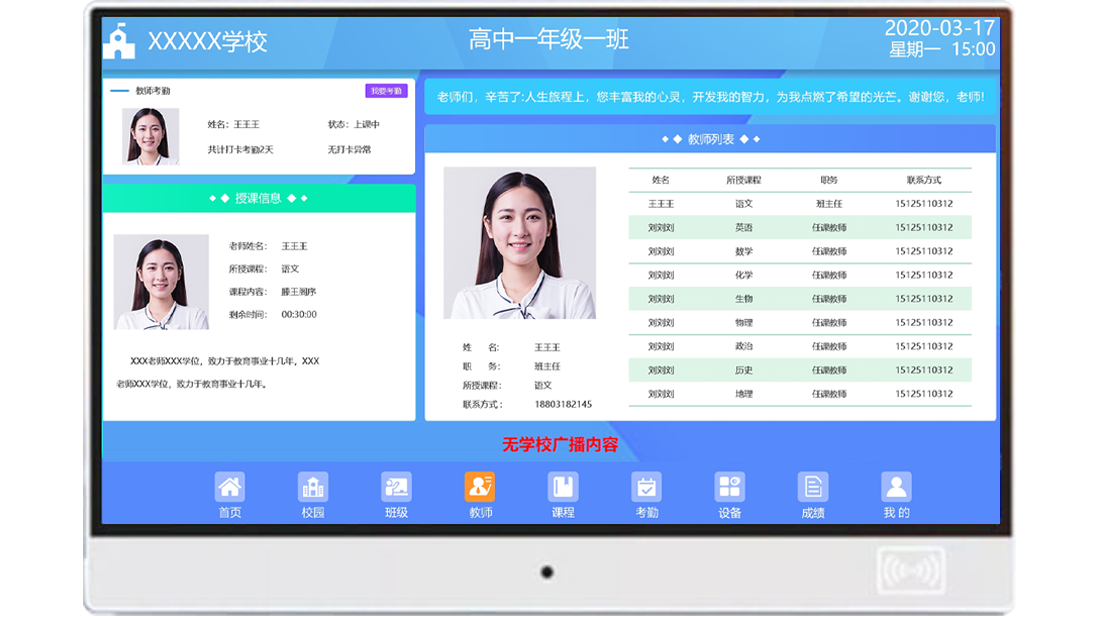 可通過該模塊與學(xué)校排課/選課系統(tǒng)進(jìn)行對接,實(shí)時(shí)顯示授課信息(課程、時(shí)間、授課老師等)
